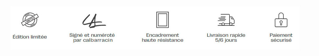 La collection d’art imprimé Calbarracín propose des reproductions haute fidélité réalisées sur papier brillant art 300g avec encres pigmentaires pour une stabilité et une richesse des couleurs durables.