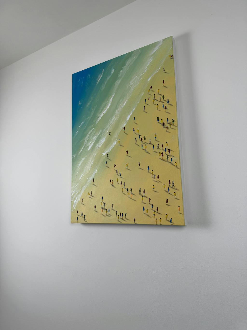 J’ai adoré l’idée de ces petites silhouettes qui se déplacent ensemble comme une société en mouvement. Le tableau est à la fois simple et très intelligent dans sa composition. Il me fait penser aux gens, aux rencontres et à l’énergie de la vie, un peu comme une scène sur la plage où chacun suit son propre chemin. C’est une œuvre originale qui fait réfléchir et qui apporte une touche artistique très moderne à la maison.