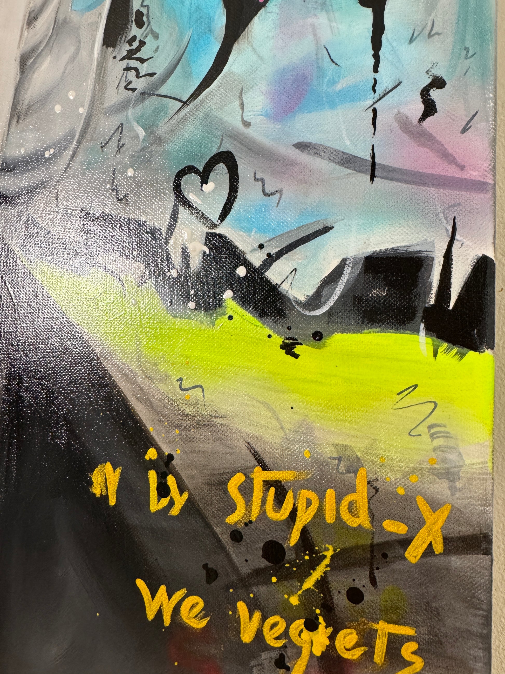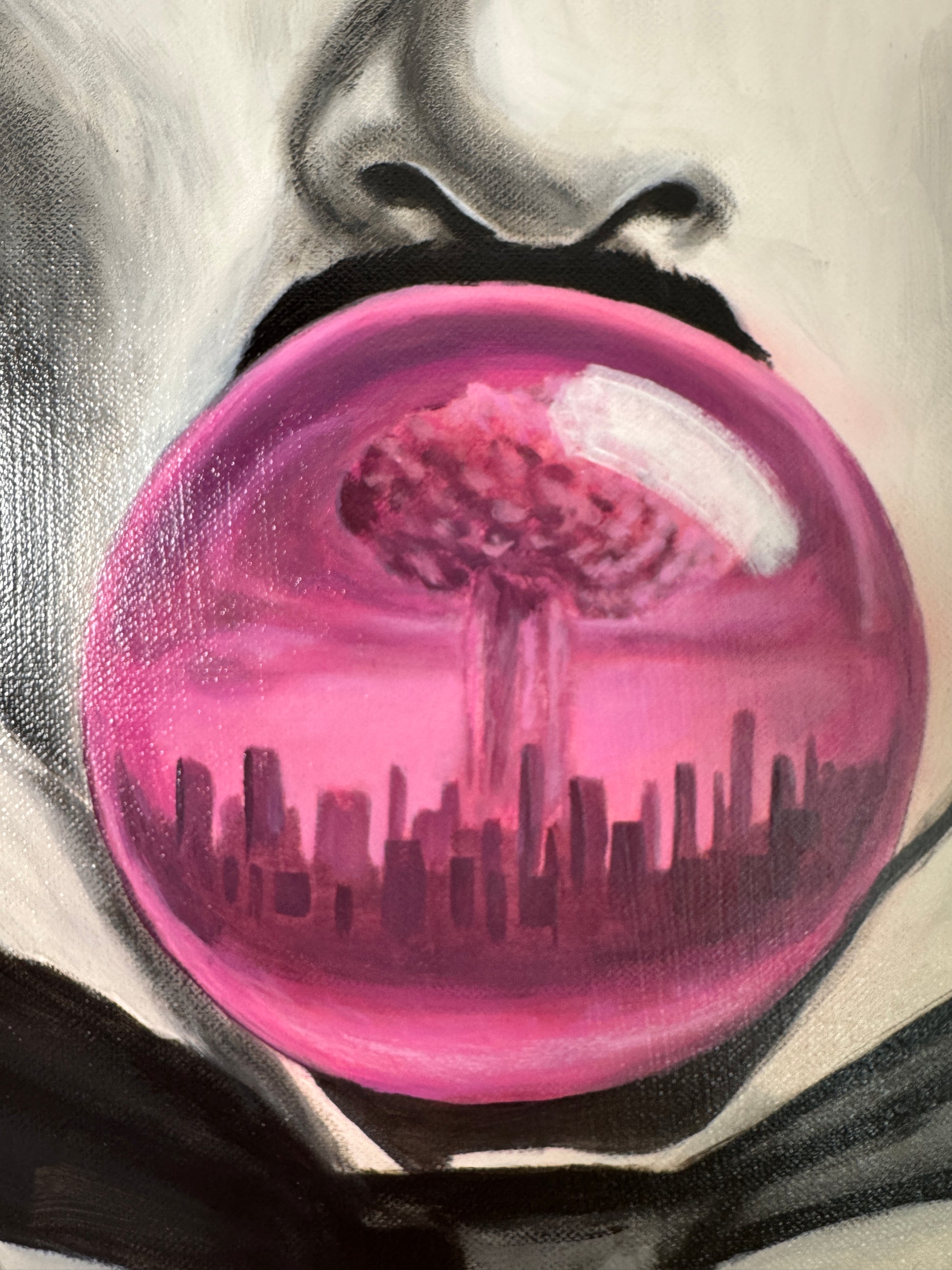 Un portrait moderne et saisissant, où l’intensité du regard traduit l’incrédulité face à un monde qui semble se désagréger. À travers cette expression, l’artiste capte ce sentiment intérieur de fragilité que nous pouvons tous éprouver, tout en offrant un message d’espoir.