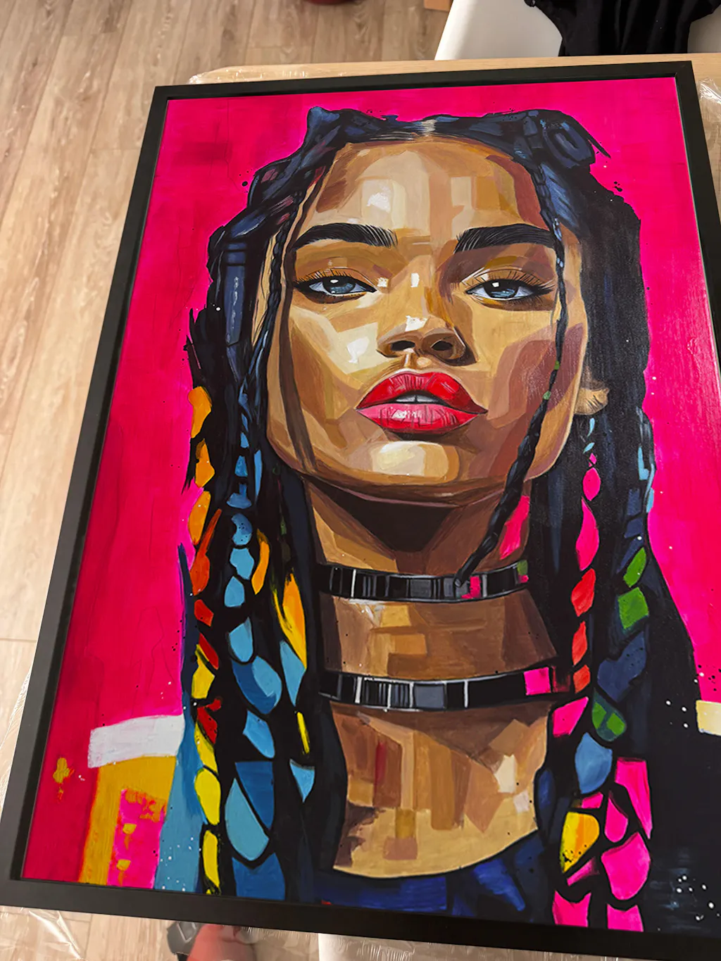 Très belle surprise en découvrant le tableau en vrai. Les couleurs sont encore plus intenses que sur les photos et les détails du visage donnent beaucoup de profondeur à l’œuvre. Une fois accroché chez moi, il a complètement transformé l’ambiance de la pièce. C’est exactement le type d’art moderne que je cherchais.